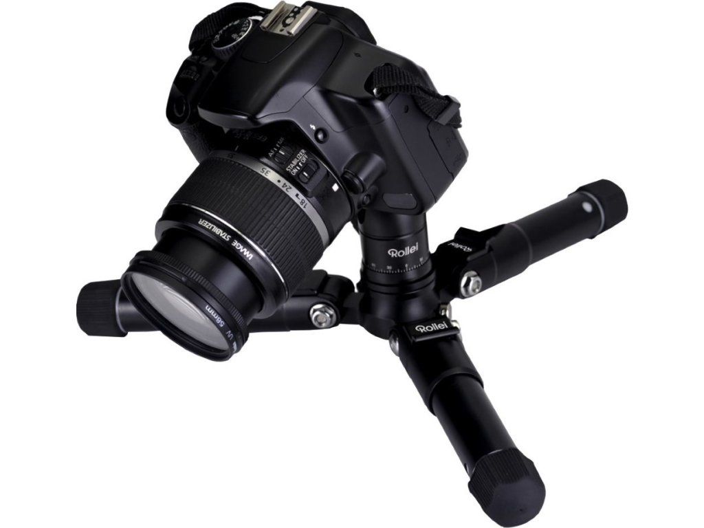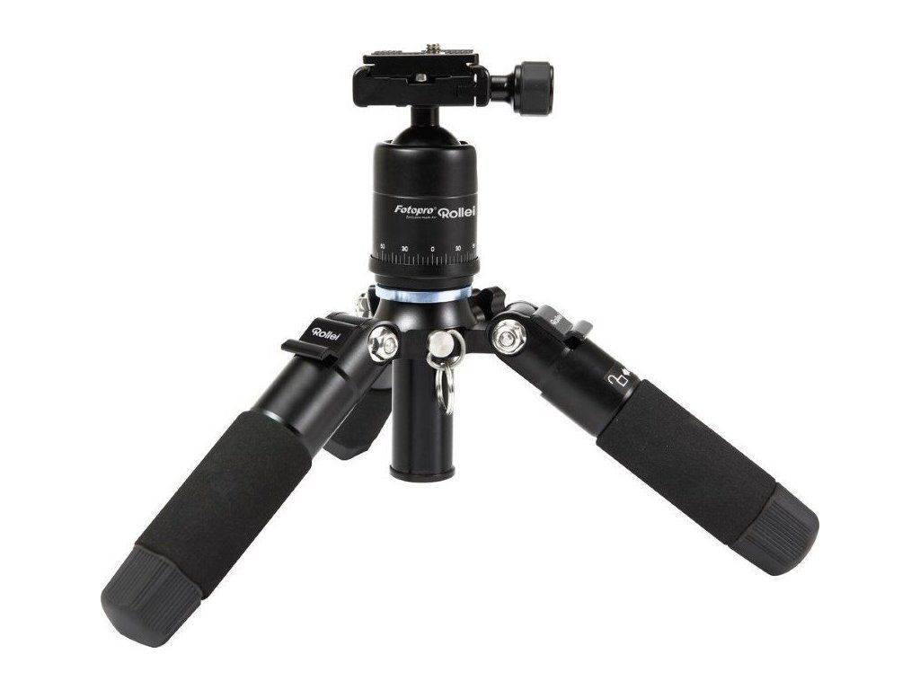 Flexibilní malý stativ od společnosti Rollei nabízí panoramatickou hlavu s rychloupínací destičkou. Základnou stativu jsou gumové nožičky pro stabilní polohu. Minimální výška stativu je 16 cm, maximální pak 47 cm. Celková hmotnost činí 780 g a stativ unese zátěž solidních 8 kg. Tento malý stativ je vhodný zejména pro focení makra. Součástí balení je praktická brašna a již zmiňovaná panoramatická hlava FPH-53P.