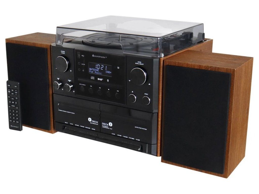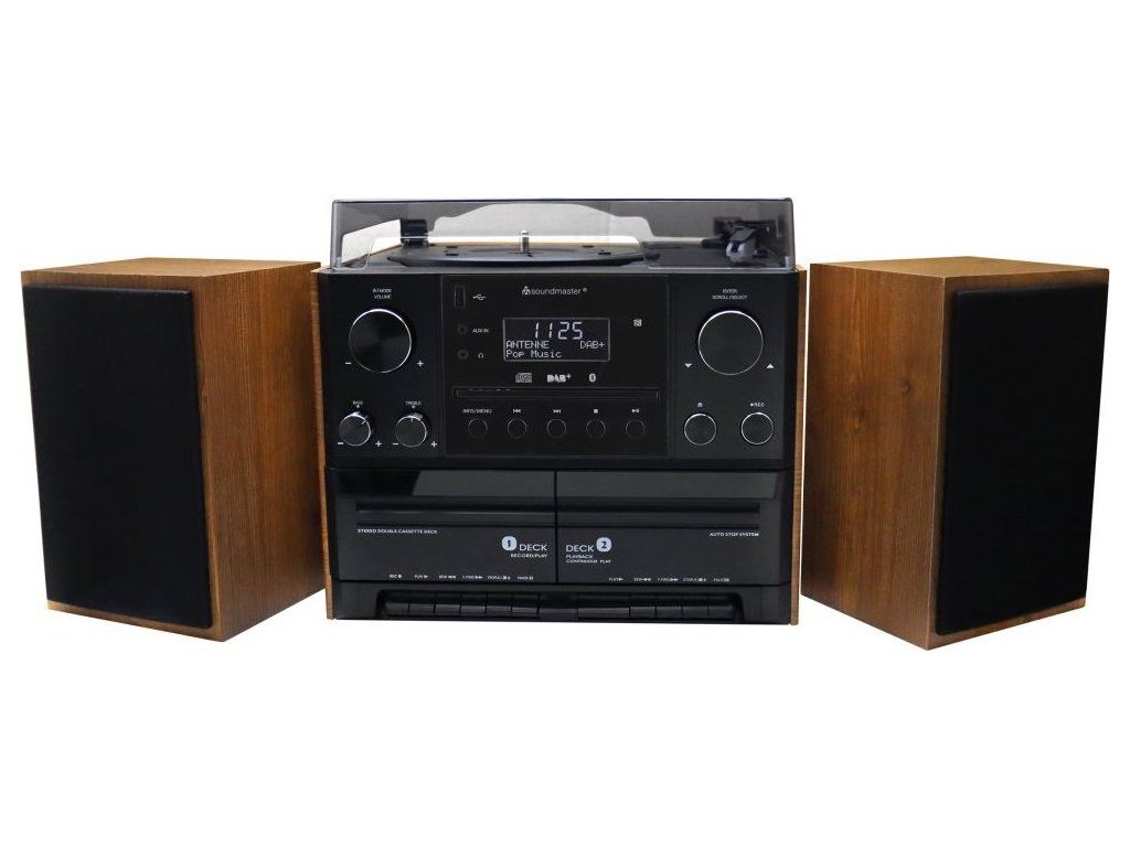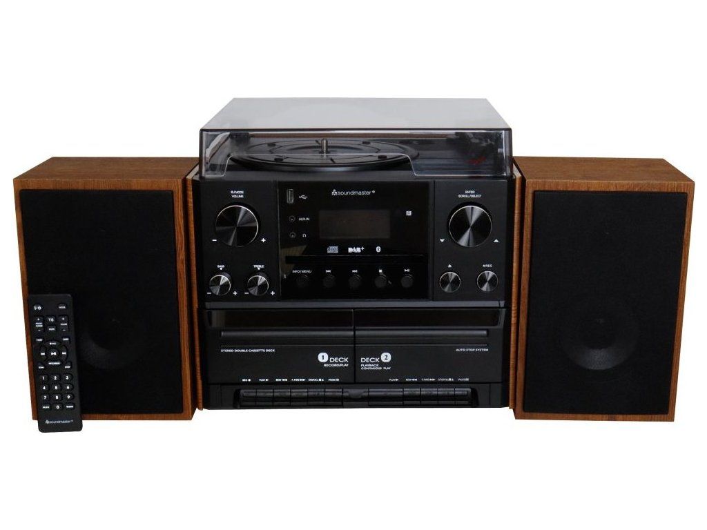ROZBALENÉ - Soundmaster Elite line MCD5600BR/ Gramofon/ CD/ 2x kazeta/ BT/ DAB+/ MP3/ 2x5W/ Hnědo-černá