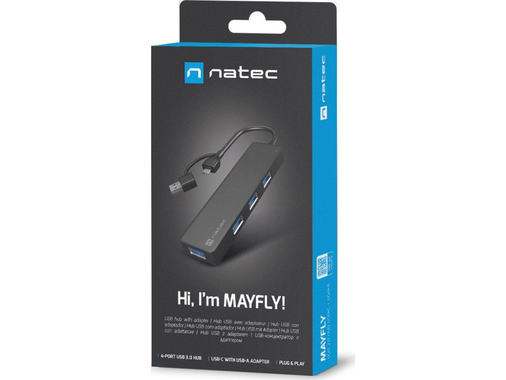 Hledáte kompaktní a funkční USB HUB, který vám umožní používat více příslušenství? Seznamte se s Natec Mayfly - USB rozbočovačem s až 4 porty USB-A 3.0 a adaptérem, který jej připojí jak k USB-C, tak ke klasickému konektoru typu A. Malé rozměry, vysoká rychlost přenosu dat a připravenost k provozu bez zbytečných ovladačů - to je Natec Mayfly.