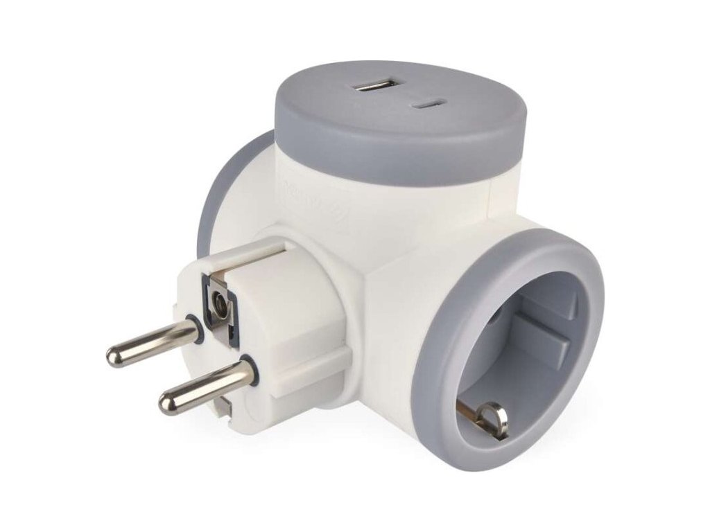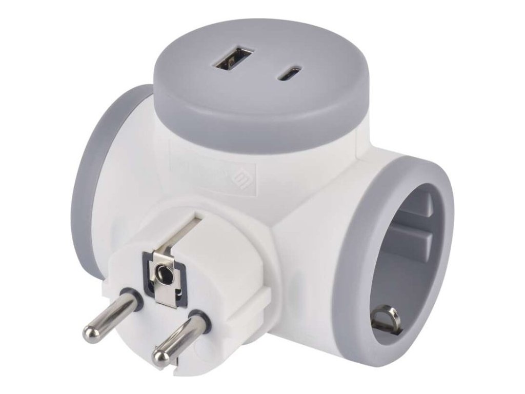 Rozbočovací zásuvka 2×, 1×USB-A+1×USB-C, bílo-šedá