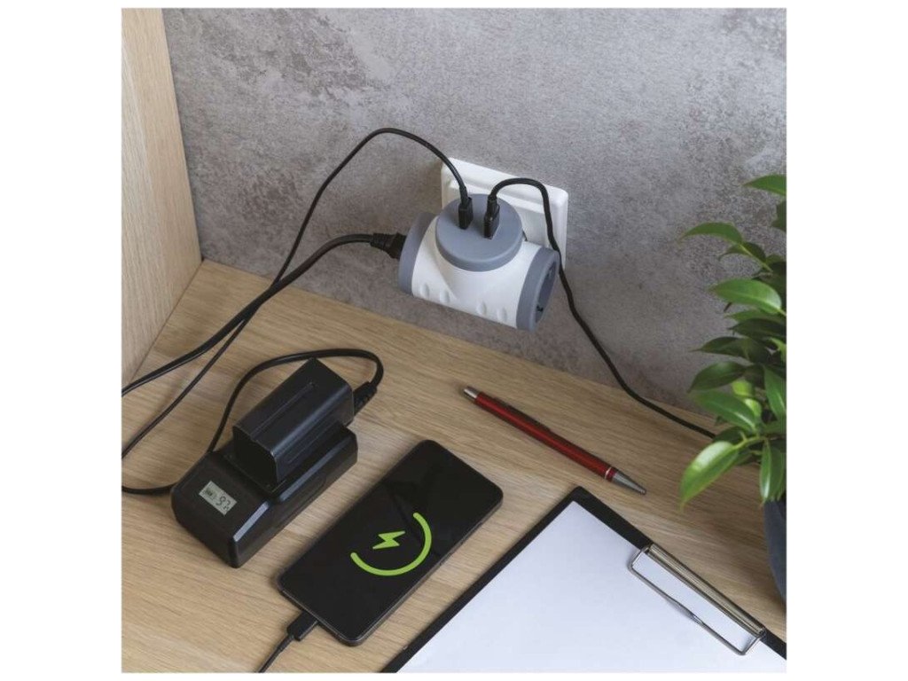 | Produkt: | rozbočovací zásuvka 2× + 1× USB-A (QC 20 W) + 1× USB-C (PD 20 W) |