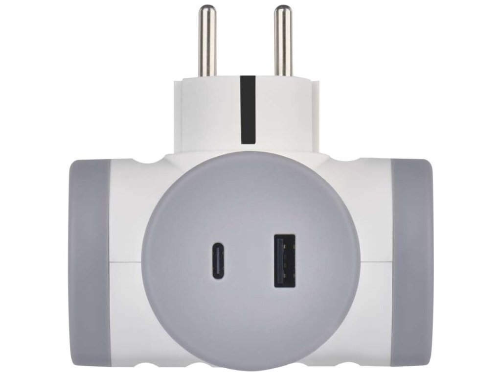 Rozbočovací zásuvka 2×, 1×USB-A+1×USB-C, bílo-šedá