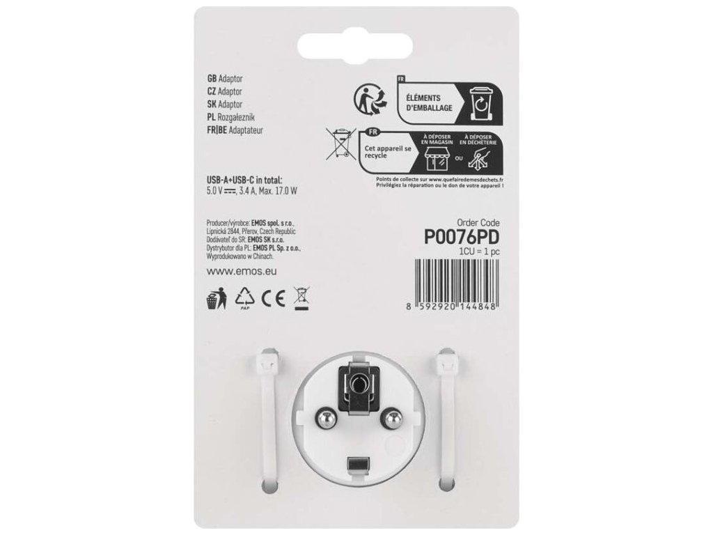 Produkt: | rozbočovací zásuvka 2× + 1× USB-A (QC 20 W) + 1× USB-C (PD 20 W) |