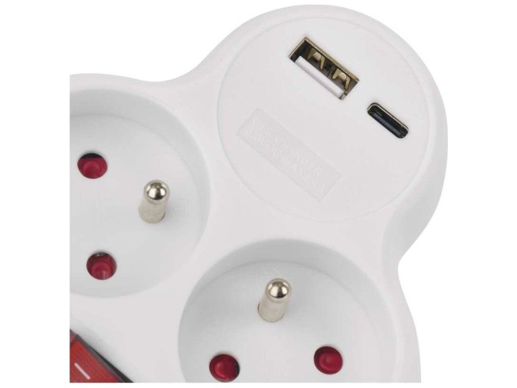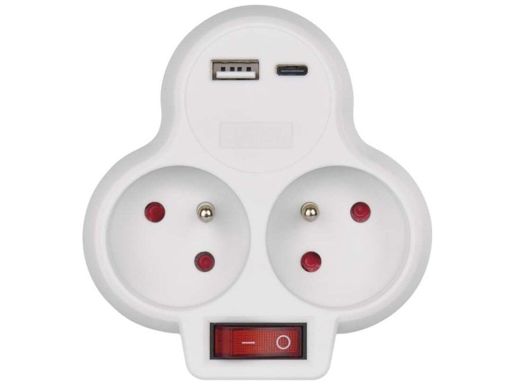 Rozbočovací zásuvka 2×, vyp., 1×USB-A+1×USB-C, bílá