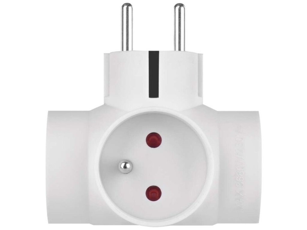 Rozbočovací zásuvka 3×, kulatá, bílá