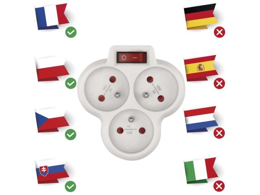 | Produkt: | rozbočovací zásuvka 3× s vypínačem |