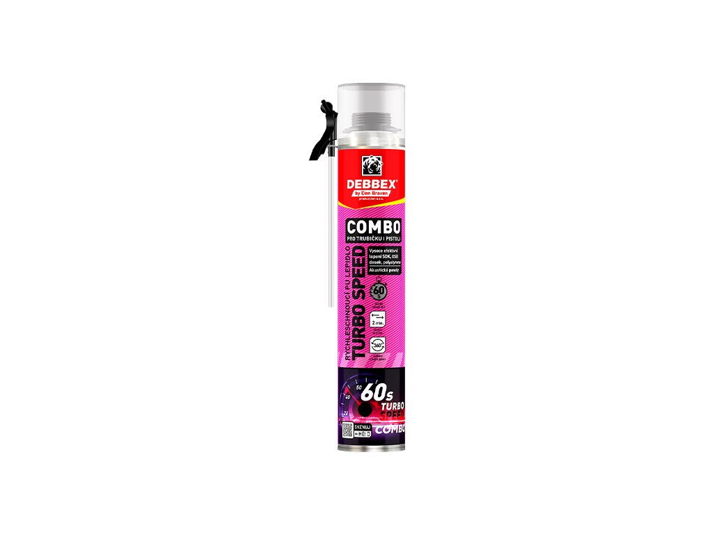 Rychleschnoucí PU lepidlo Turbo Speed COMBO je jednosložková pěna, speciálně vyvinutá pro rychlé lepení s počátkem tuhnutí již po 60 sekundách. Možnost aplikace pistolí i trubičkou 2v1. Díky vysoké přilnavosti a lepivosti k různým stavebním podkladům, jako je beton, dřevo, kámen nebo polystyren, je ideální pro široké spektrum použití. Po vytvrzení je objemově stálé a vytváří kvalitní, rovnoměrnou strukturu.