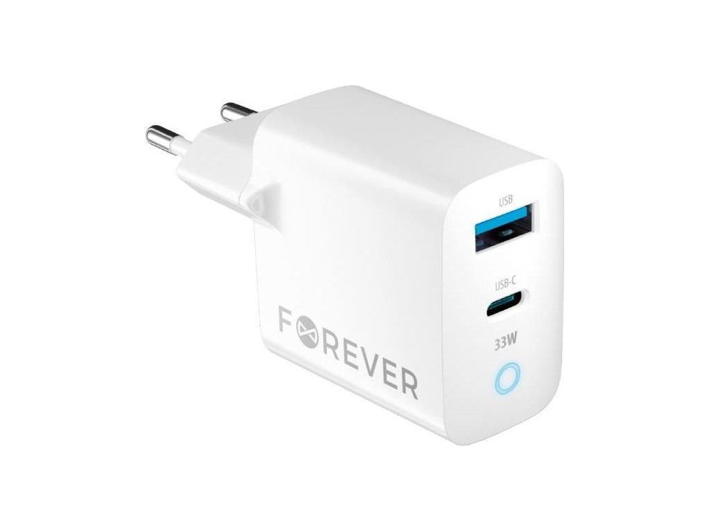 Rychlonabíječka do sítě Forever GaN TC-06-33AC PD QC 1x USB-C 1x USB 33W bílá
