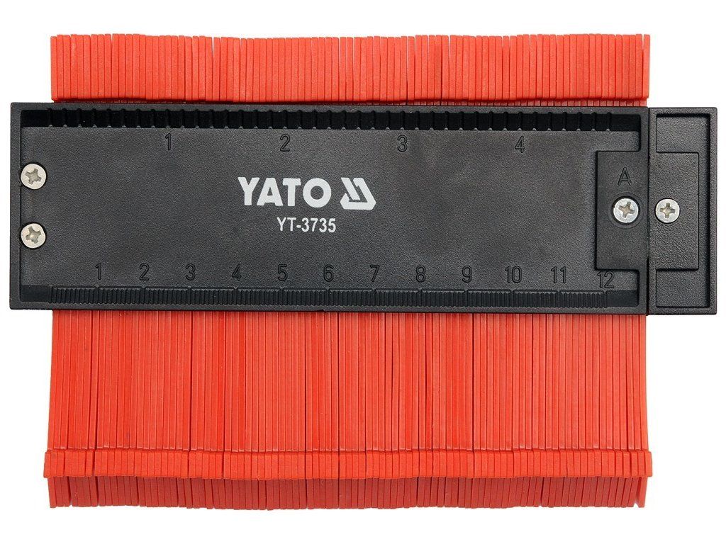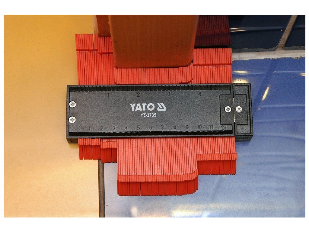 Plastová obrysová šablona šíře 125 mm pro přenášení tvarů profilů předmětů. Praktická pomůcka například pro karosáře. Přiložením lamel šablony k předmětu břity lamel okopírují obrys, který je možno přenést jinam.