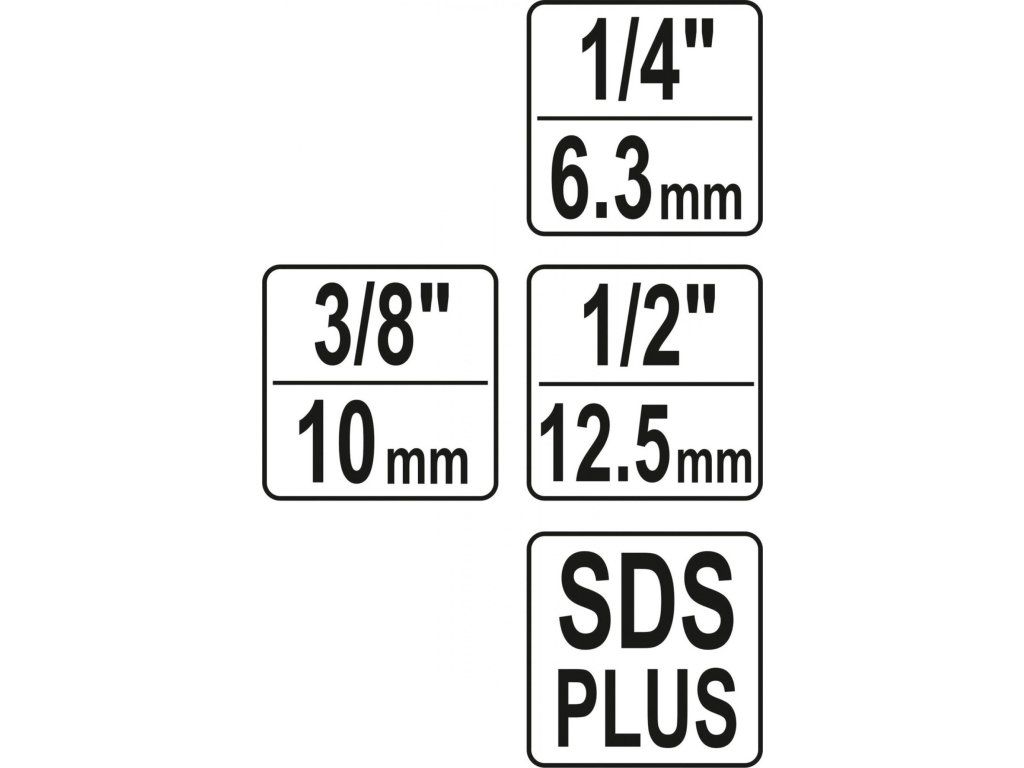 Adaptér pro vrtačky SDS-plus se zakončením s rozměry 1/4", 3/8" a 1/2".