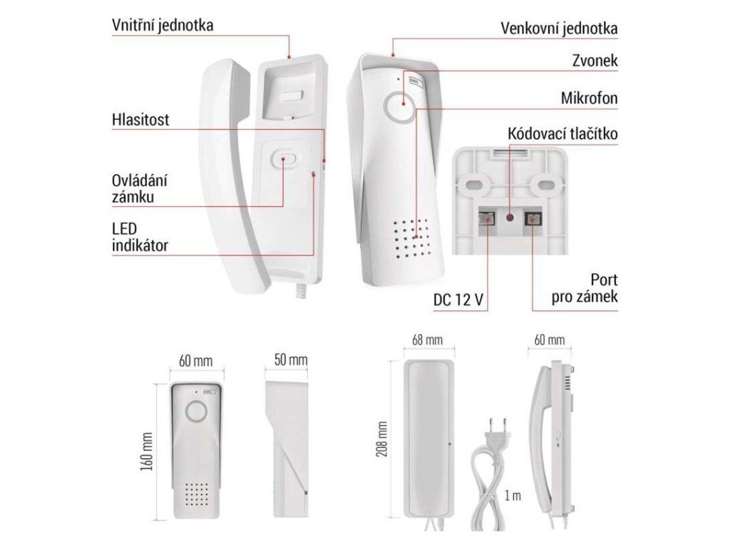 | Rozměr dvěřní stanice: | 160 × 60 × 50 mm |