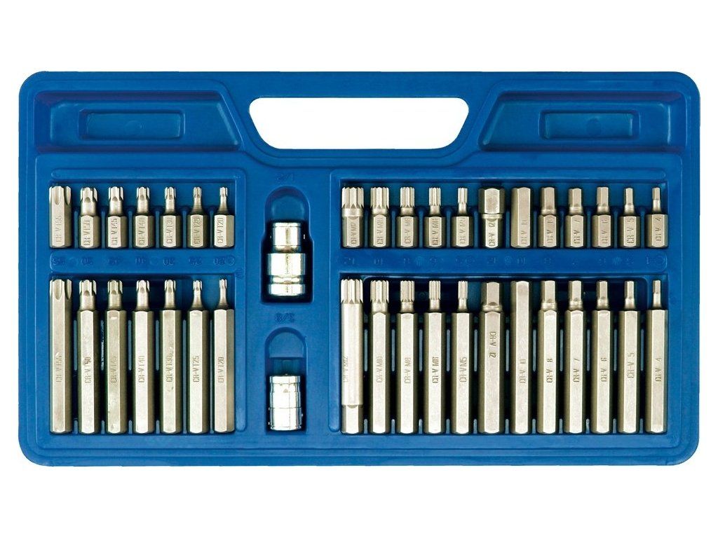 Sada klíčů pro uvolnění speciálních šroubů jako: hex, torx, spline. Vyrobeno z chrom-vanadové Crv oceli. Rozmanitost bitů umožňuje provádět mnoho prací v mechanických a automobilových službách. Konce jsou v 10mm šestihranu, přizpůsobeném pro práci s rohatkou 1/2 "a 3/8".