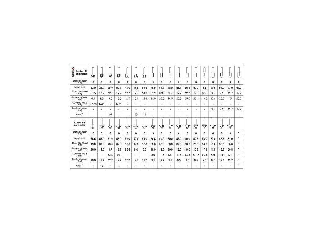 Disponují SK plátky a stopkou o průměru 8 mm. Všechny frézy se navíc pyšní řezacím břitem z tvrdokovu a vodicím kolečkem se spolehlivým ložiskem. Naleznete je navíc v přehledném a odolném kovovém kufru.