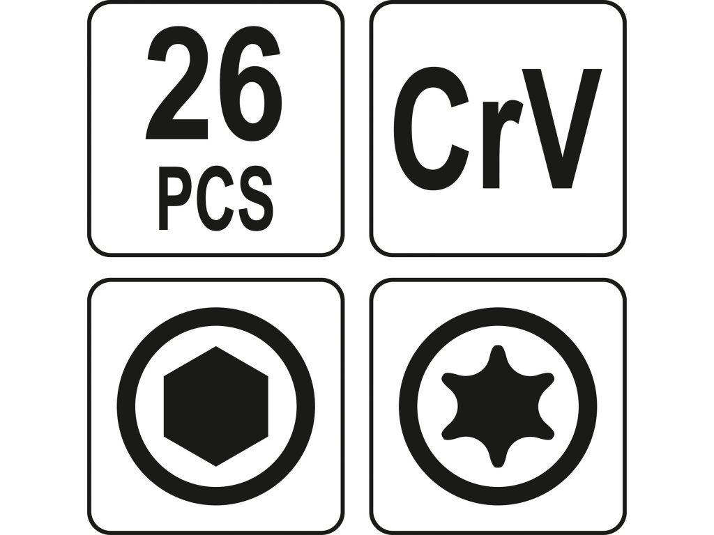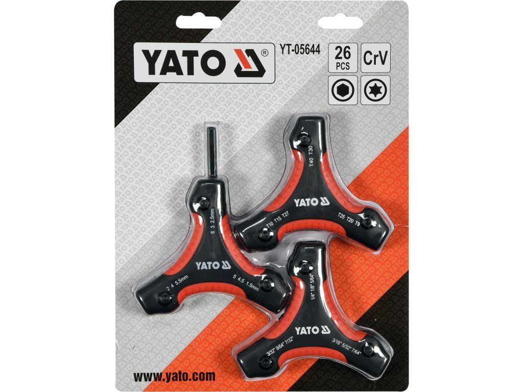 Hex 1,5; 2; 2,5; 3; 4; 4,5; 5; 5,5; 6 mm Hex 5/64"; 3/32"; 7/64"; 1/8"; 9/64"; 5/32"; 3/16"; 7/32"; 1/4" Torx T9; T10; T15; T20; T25; T27; T30; T40Doplňkové parametry