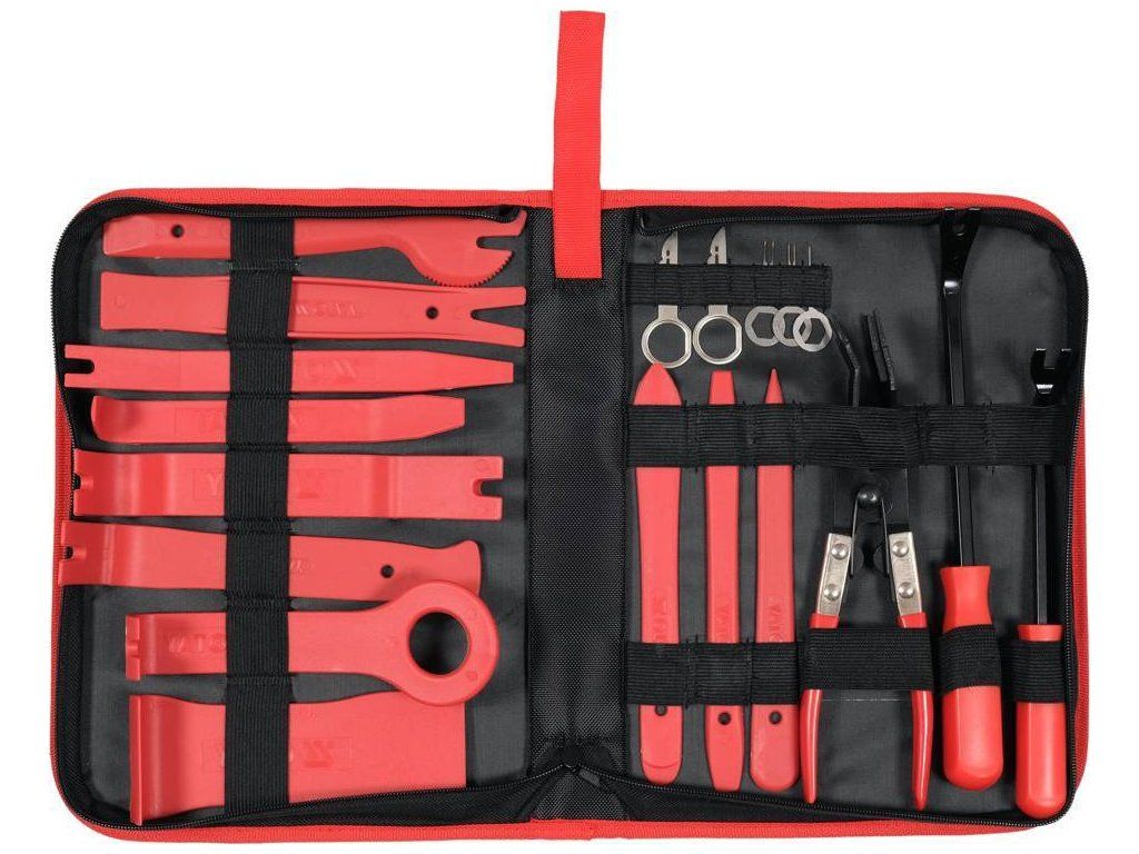 Sada obsahuje 19 komponentů pro rychlé a precizní odstranění, jak autorádií, tak čalounění z jakéhokoli interiéru vozidel.