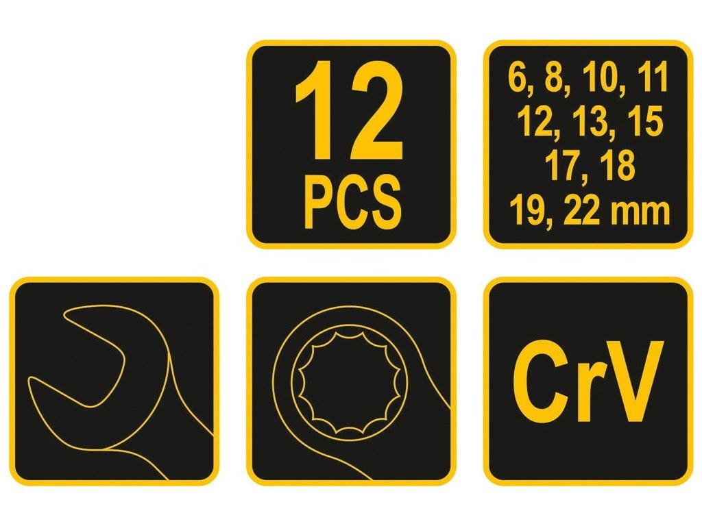 Sada klíčů očkoplochých 12 ks 6 - 22 mm CrV