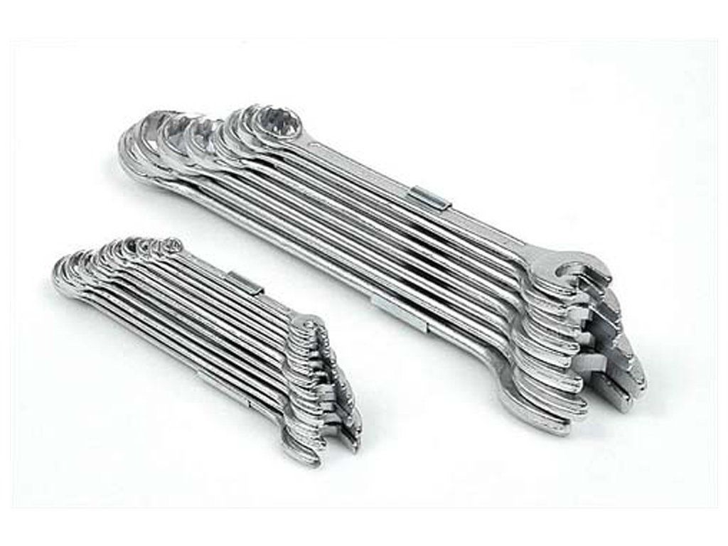 V sadě se nachází klíče velikosti 6, 7, 8, 9, 10, 11, 12, 13, 14, 15, 16, 17, 18, 19, 21, 22, 24, 27, 30 a 32 mm. Jednotlivé klíče drží pohromadě pomocí kovové spony.
