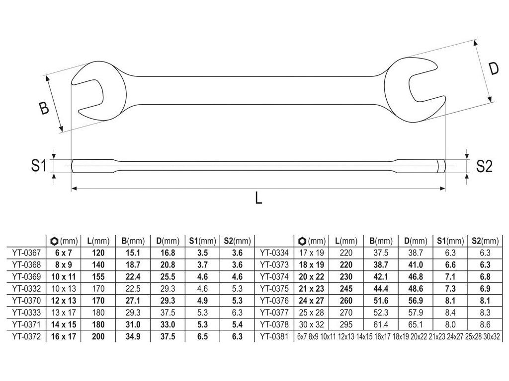 • Klíče stranové sada 10 kusů 6-27 mm CrV Yato