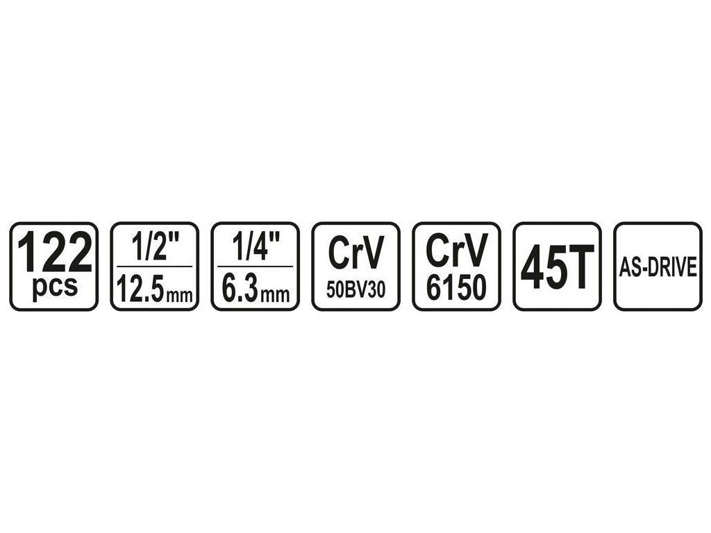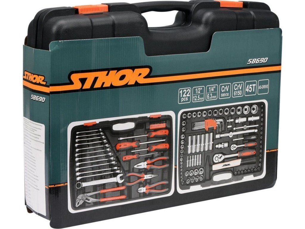 Sada nářadí STHOR 1/2", 1/4" 122 ks (CrV 6150)