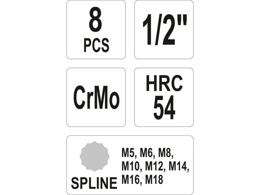 Sada nástrčných klíčů 1/2" Spline, 8ks