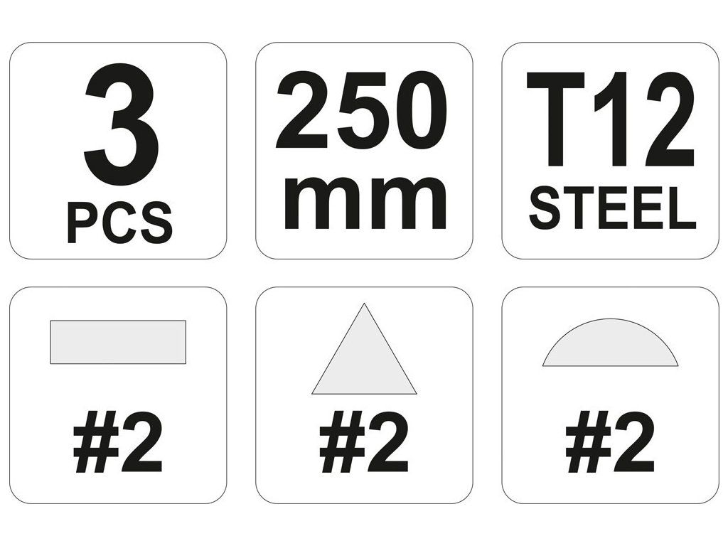 Tato sada pilníků má křížový sek typu 2. Tvar a hrubost pilníku závisí na typu práce a požadovaném výsledku.