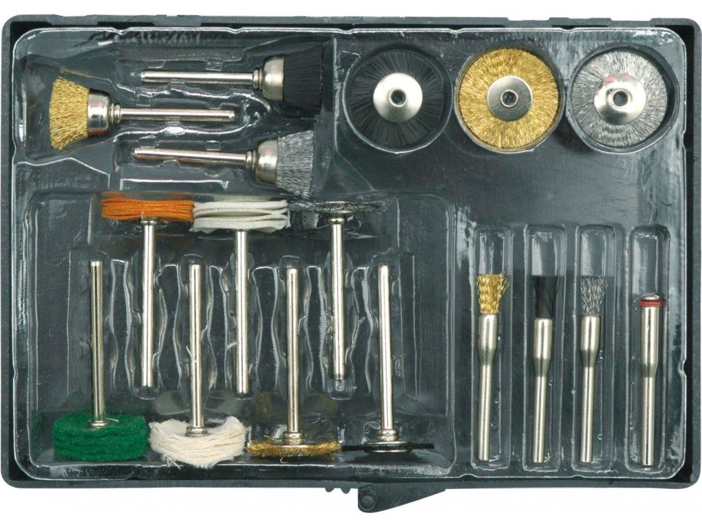 Obsah balení: drátěné kartáče 3 ks nylonové kartáče 7 ks drátěné kolíky 3 ks plstěné leštící kolíky 3 ks vřeteno pro instalaciDoplňkové parametry