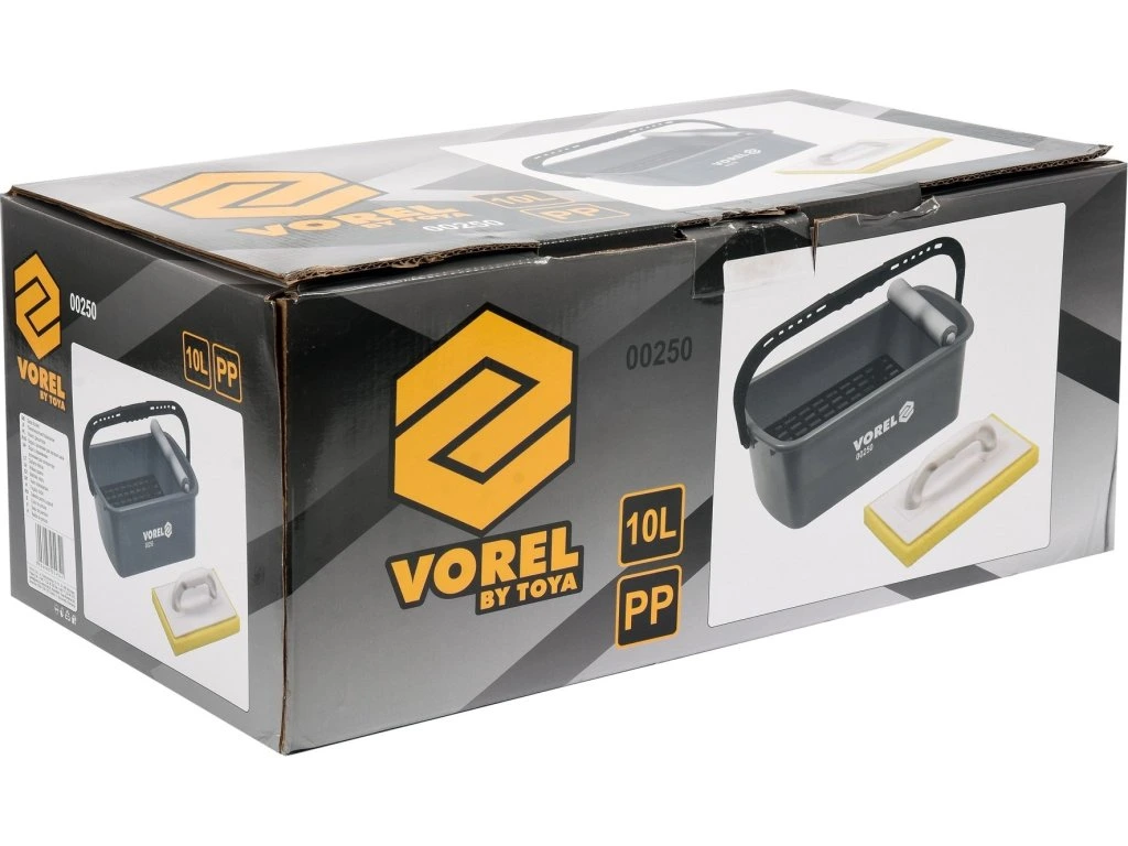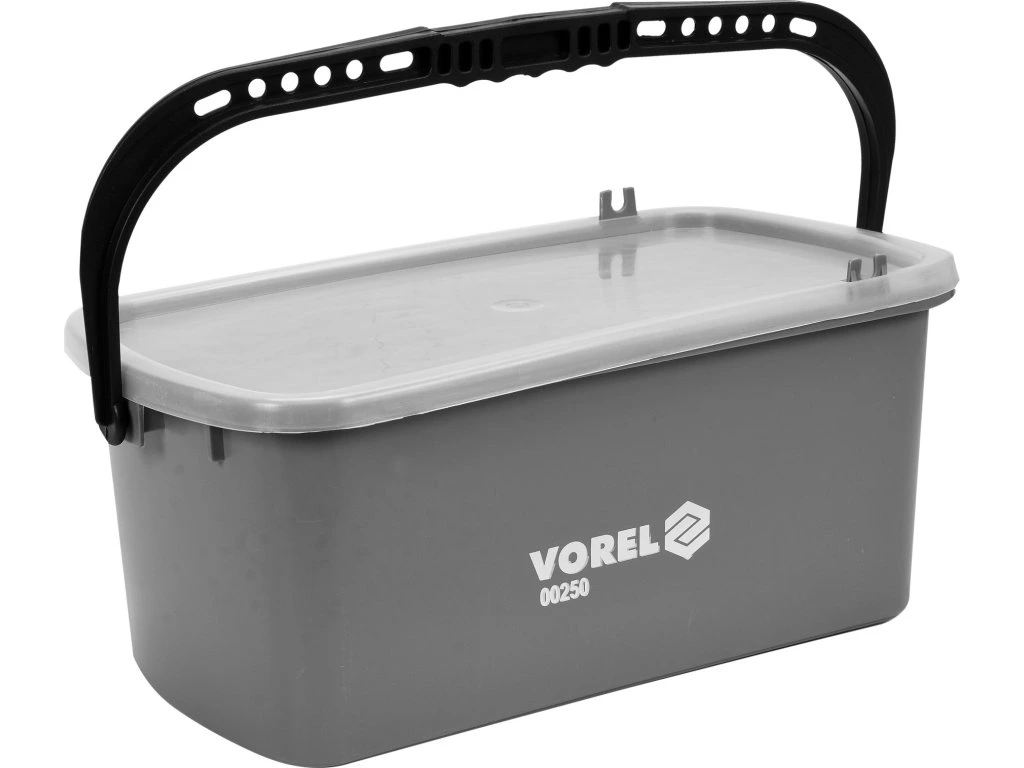 Polypropylenový kbelík s objemem 10l a rozměry 41,5 x 22 x 17,5 cm. Je opatřen válečkem pro vytlačování nečistot z hladítka a uvnitř je opatřen separační mřížkou.