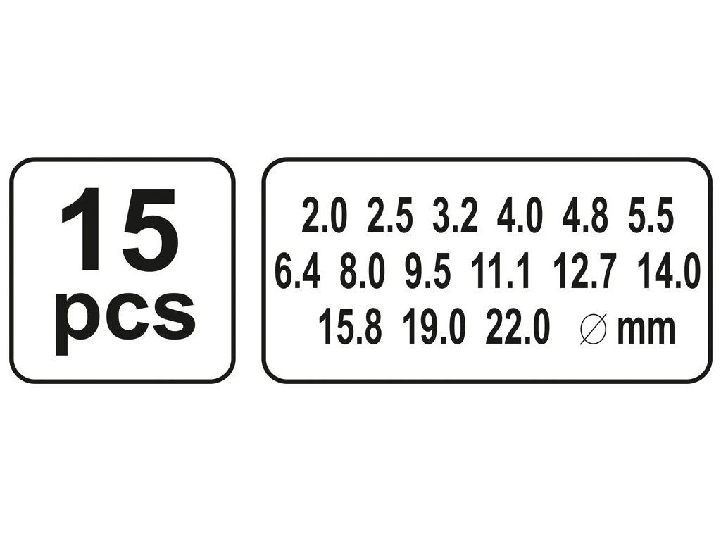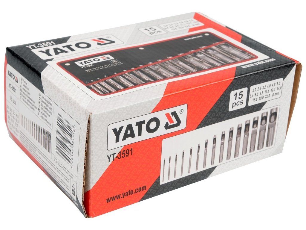 • Děrovače sada 15 kusů YATO průměr 2 - 22 mm