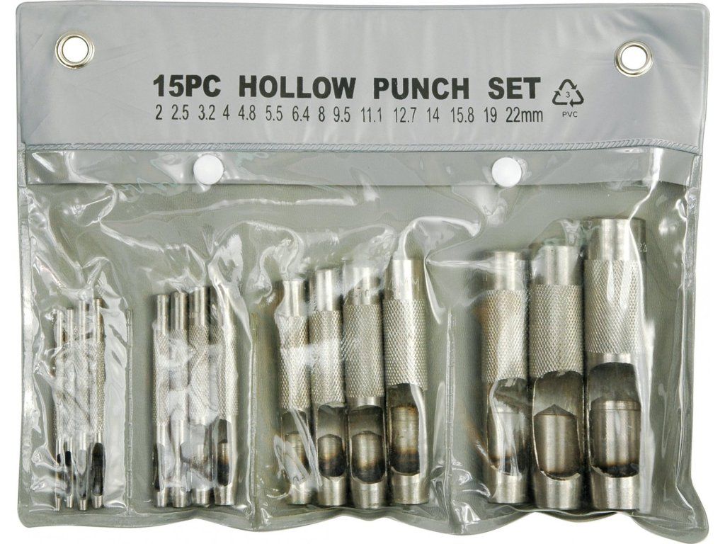 Kvalitní děrovače sada 15 kusů pro vysekávání otvorů v materiálu jako je PVC , kůže, pryž, těsnící papír, tvrdé lepenky apod. Precizní broušené ostří z kvalitní slitiny uhlíkové oceli.