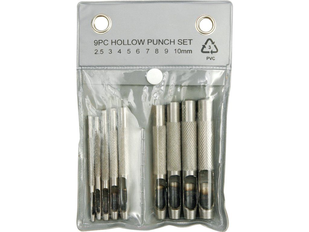 Kvalitní děrovače sada 9 kusů pro vysekávání otvorů v materiálu jako je PVC , kůže, pryž, těsnící papír, tvrdé lepenky apod. Precizní broušené ostří z kvalitní slitiny uhlíkové oceli.