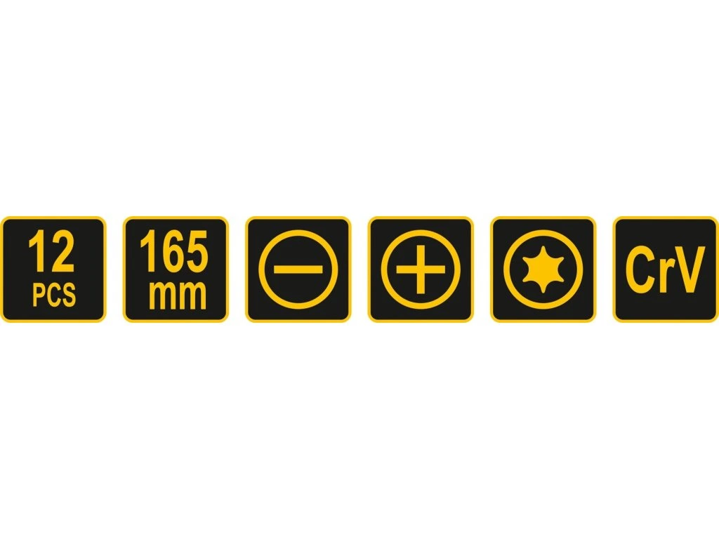 Nástroje délky 165 mm jsou zhotoveny z CrV oceli, s ergonomicky tvarovanými rukojeťmi z dvousložkového plastu.