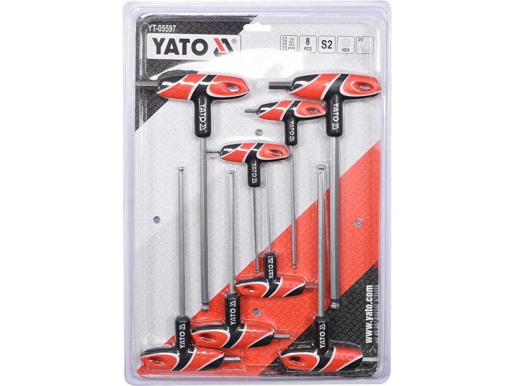 Sada klíčů v provedení T šroubovák, osazený 2x imbus klíčem s kulovým zakončením (1x dlouhý, 1x krátký) a ergonomickou rukojetí, díky které je jeho použití opravdu snadné. Vyrobeno z oceli S2, která zaručuje dlouhou životnost.