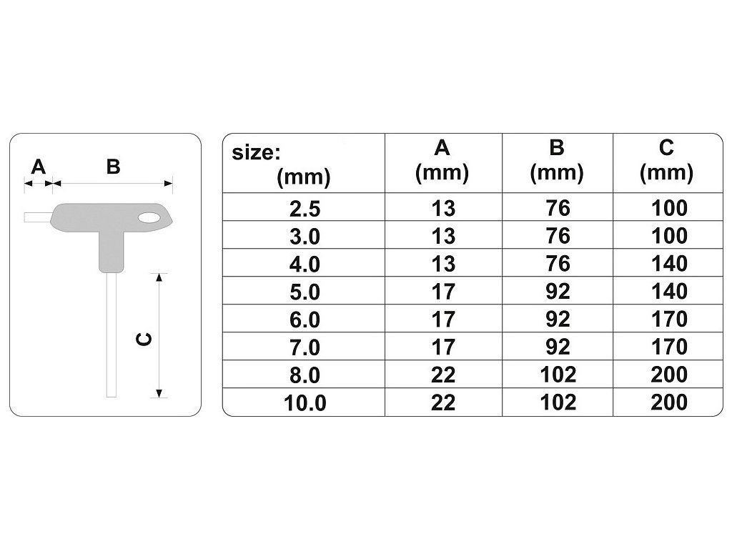 Balení obsahuje klíče 2,5, 3, 4, 5, 6, 7, 8 a 10 mm.