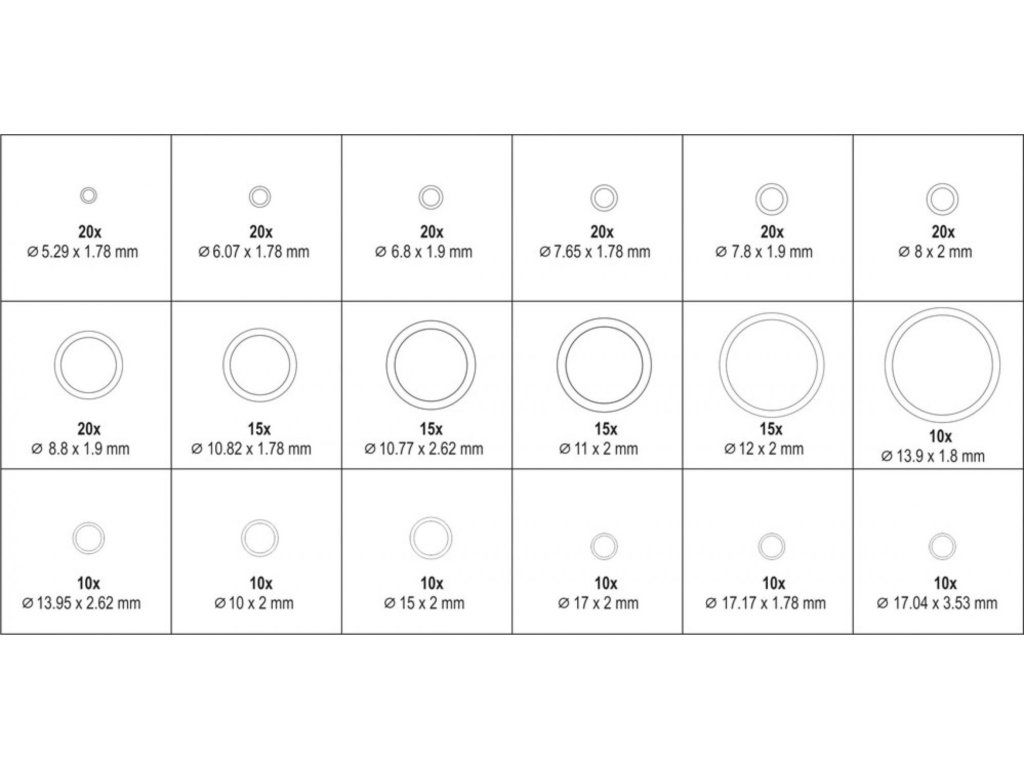 Sada 270 ks těsnících kroužků do klimatizací.