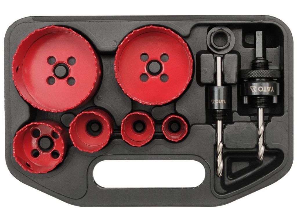 Praktická sada vrtacích korunek s unašeči s kulatou stopkou a Hex zakončením.