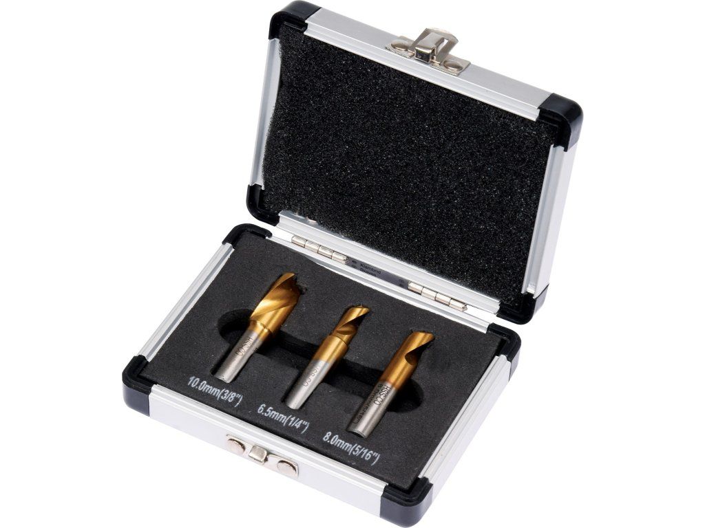 Sada vrtáků k odvrtání bodových svárů.