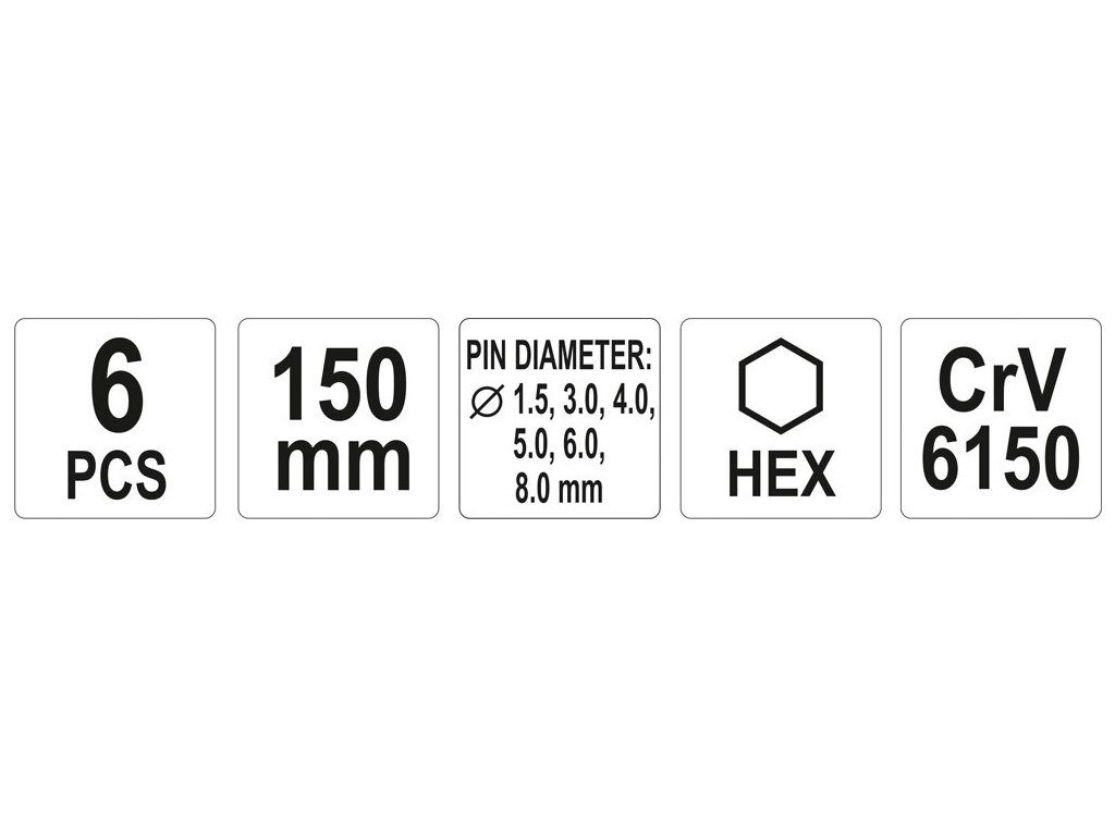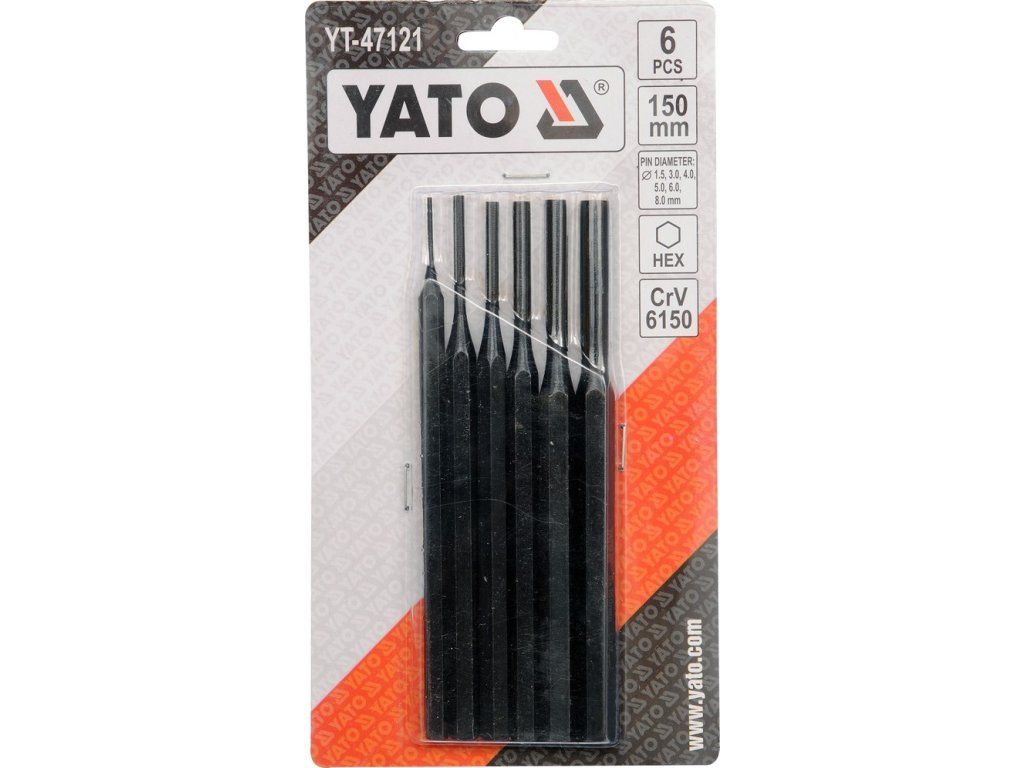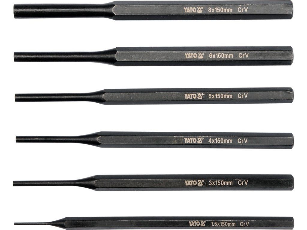 Sada obsahuje 6ks vyražečů s rozměry 1,5; 3; 4; 5; 6; 8 mm s délkou 150 mm.