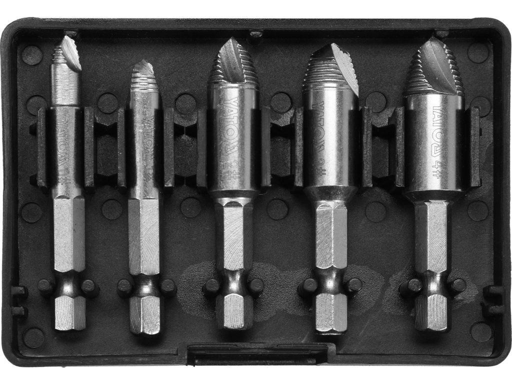 Sada vytahováků pro zlomené šrouby YATO YT-06035. Profesionální 5dílná sada pro odstranění zlomených šroubů.