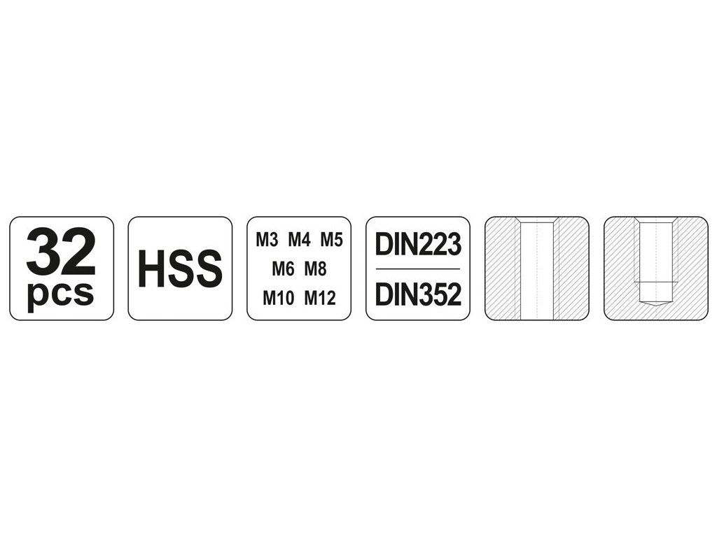 • Závitníky a očka sada M3-M12 HSS Yato