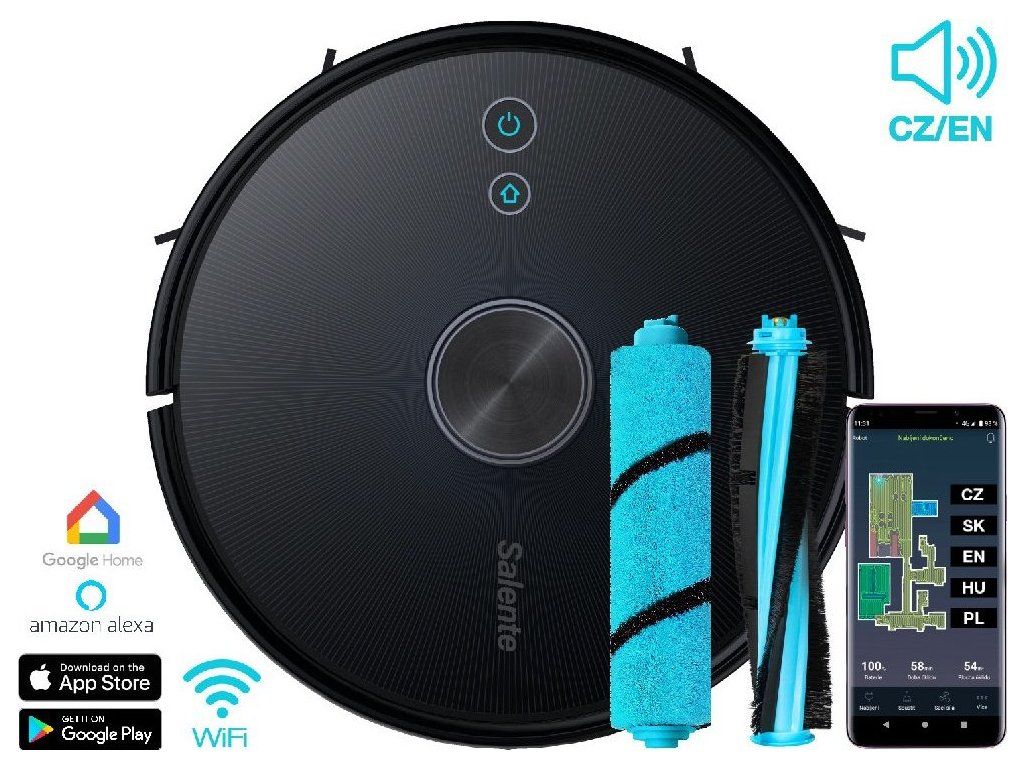 Intuitivní aplikace Salente umožní ovládat vysavač kdekoliv. Informuje vás o aktuálním stavu vysavače, lze zde spustit různé režimy úklidu, nastavit úrovně vysávání nebo vytírání, plánovaný úklid nebo dobu kdy nechcete být rušeni. Mobilní aplikace je v českém i slovenském jazyce a je určena pro operační systémy Android a iOS.