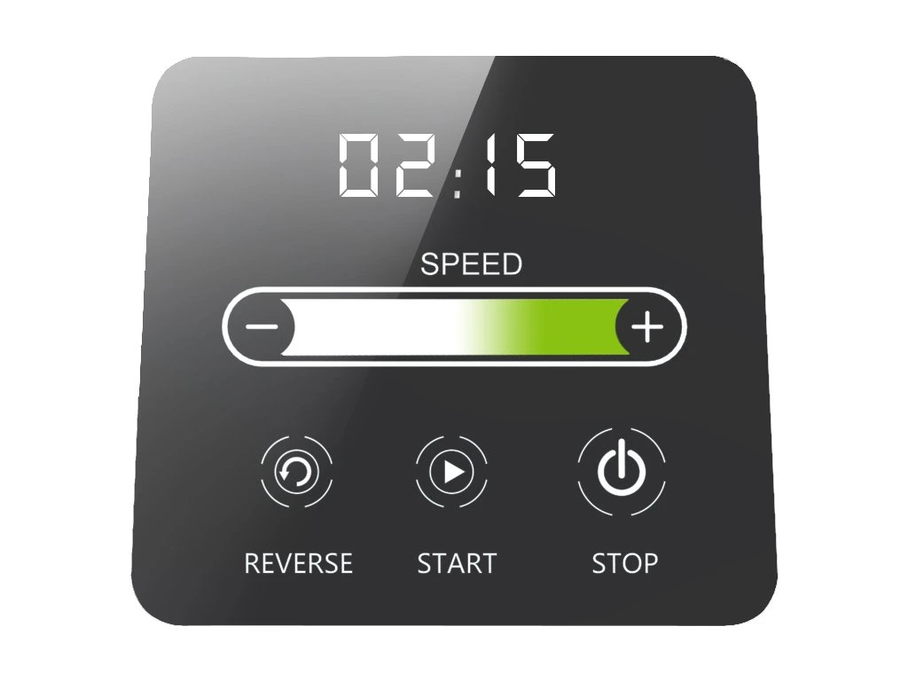 Vrcholem komfortu u masomlýnku Salente MeatPlus je dotykový digitální displej se sliderem tak, jak je znáte ze špičkových varných desek, kdy stačí prstem pouze lehce přejet doleva nebo doprava a hned se reguluje rychlost otáček. Tento způsob ovládání je nejen velmi moderní, elegantní, ale hlavně rychlý a zaručuje dlouho životnost na rozdíl od běžných mechanických ovládacích prvků. Umíte si to představit – máte ruce od masa a tuku a potřebujete rychle a spolehlivě regulovat otáčky a tím i rychlost mletí. Displej pak stačí otřít vlhkým hadříkem a je hotovo.
