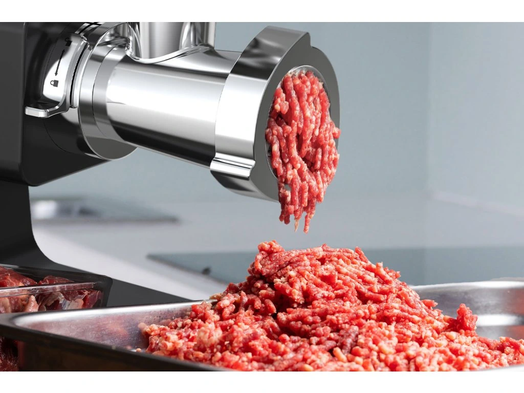 S novým mlýnkem na maso Salente MetaPlus zvládnete umlít maso na hamburger, boloňské špagety, lasagne i klobásky. Stačí jen zvolit jeden ze tří mlecích disků pro různou hrubost mletí masa. K dispozici jsou tři disky ze špičkové nerezové oceli třídy 304 s průměrem mlecích otvorů 3, 5 a 8 milimetrů. ´