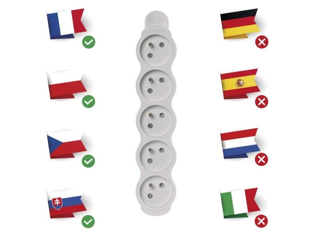 | Počet zásuvek: | 5× 2P + PE |