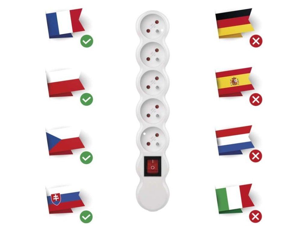 Kvalitní samostatná zásuvka určená pro montáž prodlužovacího přívodu a sloužící k připojení elektrických spotřebičů dle daného počtu zásuvek. Zásuvka je bílé barvy s vypínačem. Max. 16 A.Instalaci může provádět pouze osoba s příslušnou kvalifikací. Při montáži na stěnu je nutné použít vrut se zápustnou hlavou PZ max. průměr 2,5–3 mm, délka 30–40 mm. V případě použití jiného průměru hrozí poškození plastové části otvoru. Pokud dojde k poškození plastové části otvoru, prodlužovací přívod nepoužívejte.
