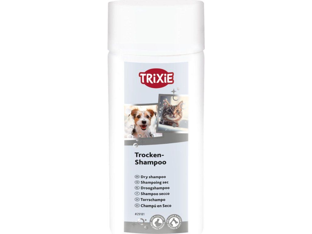 Návod k použití: Suchou srst zvířete zasypte rovnoměrně pudrem, vmasírujte a poté buď vyčešte kartáčem nebo vytřete suchým ručníkem.