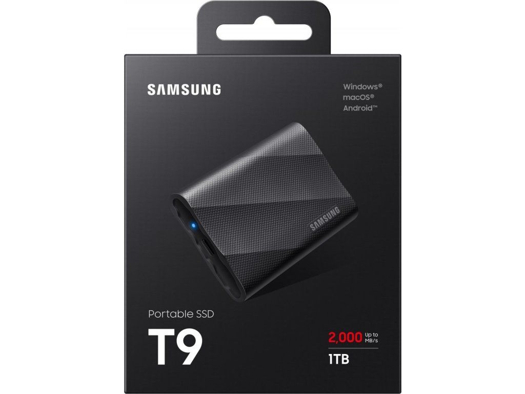 Externí pevný disk Samsung T9 v přenosném provedení, který pojme velké množství dat, Podporuje vysokou přenosovou rychlost a díky kapacitě 1 TB si poradí s velkou náloží dat během okamžiku. Je vhodný pro ukládání nejenom pracovních souborů, ale také multimédií ve vysokém rozlišení.