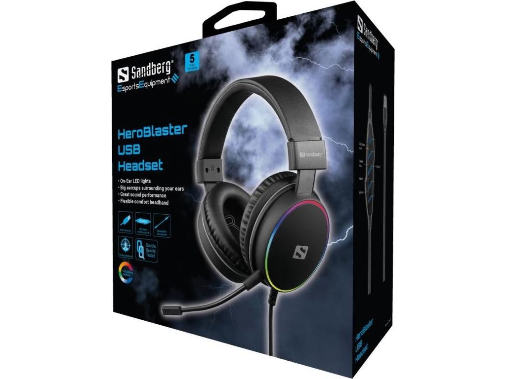 Náhlavní souprava Sandberg HeroBlaster USB Headset nabízí působivý zvuk a obklopí vaše uši, takže budete plně ponořeni do svého herního světa i vesmíru. Přináší fantastický herní zážitek v reálném životě, a zároveň zmírňuje tlak na uši stejně jako vnější sluchátka. Měkká spona přes hlavu se automaticky přizpůsobí tvaru hlavy tak, že nošení náhlavní soupravy je pohodlné celé hodiny.