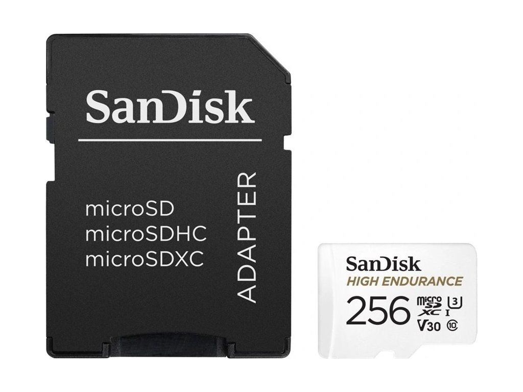 SanDisk High Endurance microSDXC 256GB / C10, U3, V30 / Full HD / 4K videos / dash cams & home monitoring / + SD Adaptér