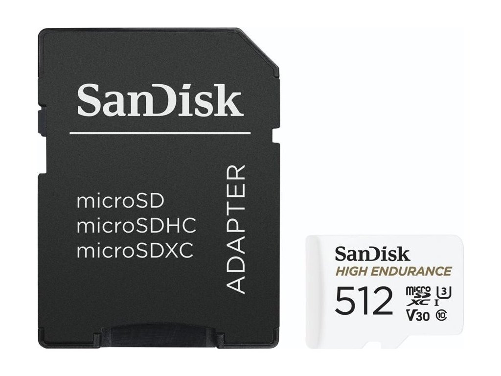 SanDisk High Endurance microSDXC 512GB / C10, U3, V30 / Full HD / 4K videos / dash cams & home monitoring / + SD Adaptér