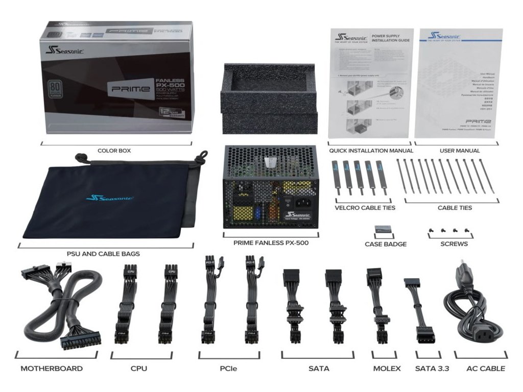 SEASONIC zdroj Prime PX-500 Fanless Platinum / ATX3.1 / aktiv. PFC / 80PLUS Platinum